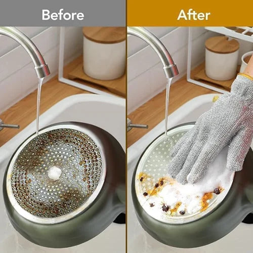 Your hand is protected with advanced metallic wire safe protection layers. It acts like a powerful scourer to scrape away black carbon, rust, and oil instantly—without damaging the skin.